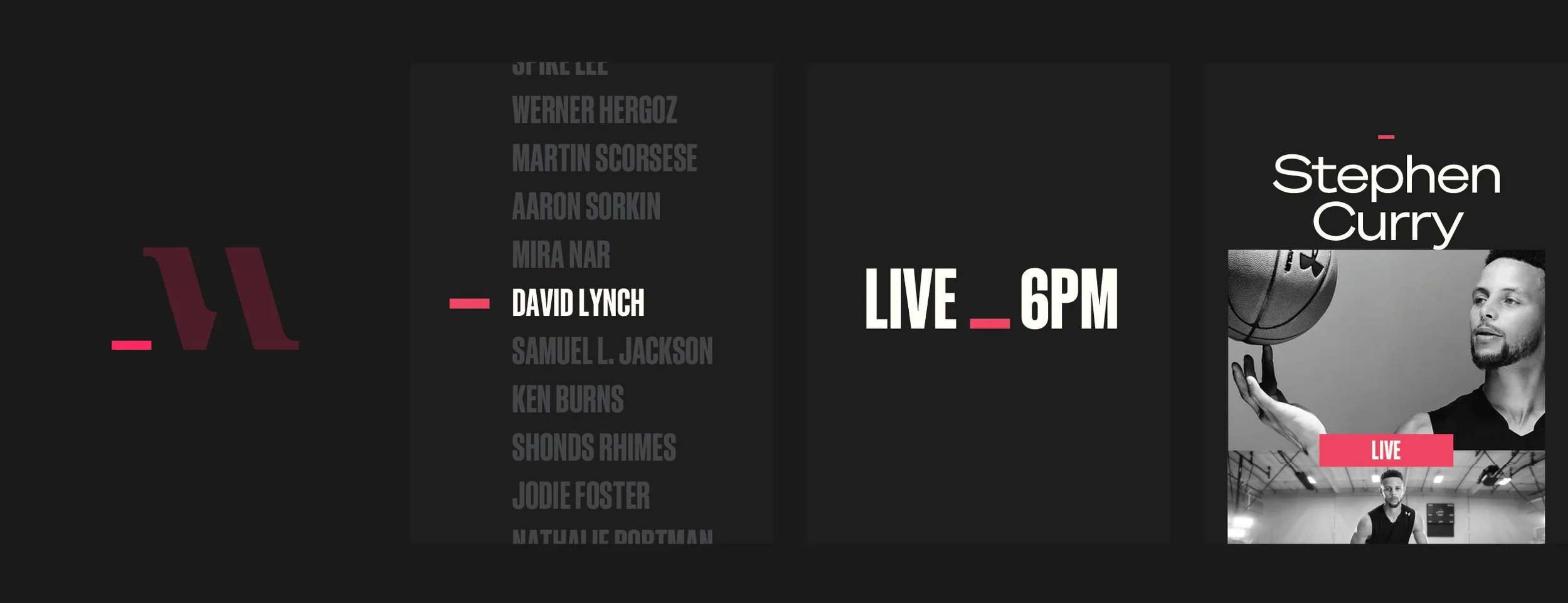 Cinematic Identity: The new brand identity mirrors the cinematic quality of MasterClass content, positioning it as a best-in-class educational platform. The visual language is sophisticated yet flexible, allowing the instructors' diverse personalities to shine.