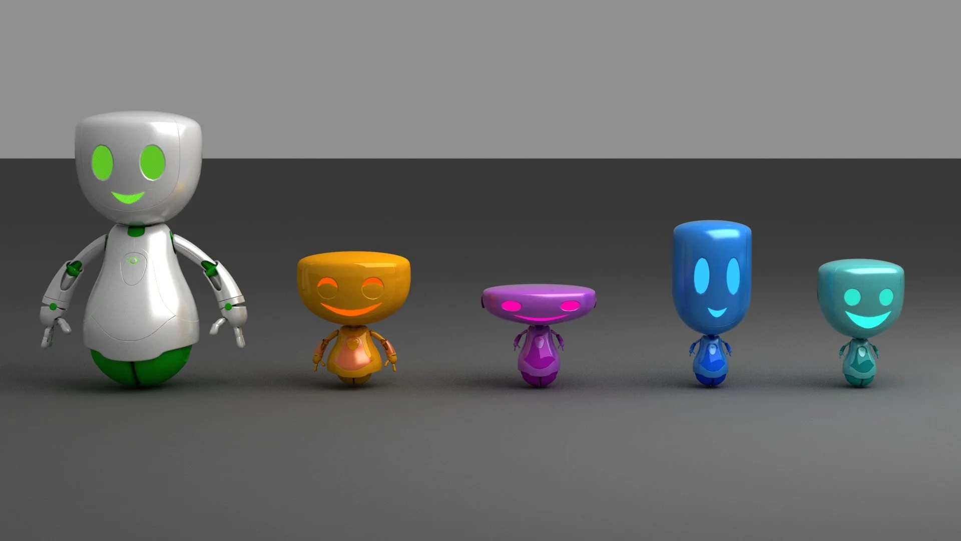 The hero bot brims with curiosity and expression, instantly recognizable in silhouette. Helper bots, with their bright grins and crescent eyes, dart about in a spectrum of colors for clarity in motion. Together, they transform “grid talk” into moments that resonate with us all.